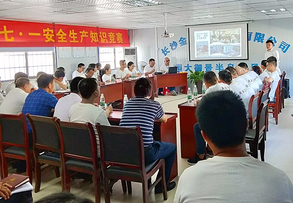 為進(jìn)一步延伸“安全生產(chǎn)月”活動(dòng),全面貫徹黨的十九大精神,積極響應(yīng)習(xí)近平總書(shū)記對(duì)安全工作的重要指示和省、市關(guān)于安全生產(chǎn)的決策部署,在公司掀起安全生產(chǎn)學(xué)習(xí)熱潮,營(yíng)造濃厚的安全生產(chǎn)氛圍。在建黨97周年之際,公司安全生產(chǎn)月活動(dòng)之時(shí),以公司黨員帶領(lǐng)全體員工開(kāi)展以“生命至上、安全發(fā)展”為主題的安全生產(chǎn)知識(shí)競(jìng)賽在恒大御景半島項(xiàng)目部會(huì)議室隆重舉行。