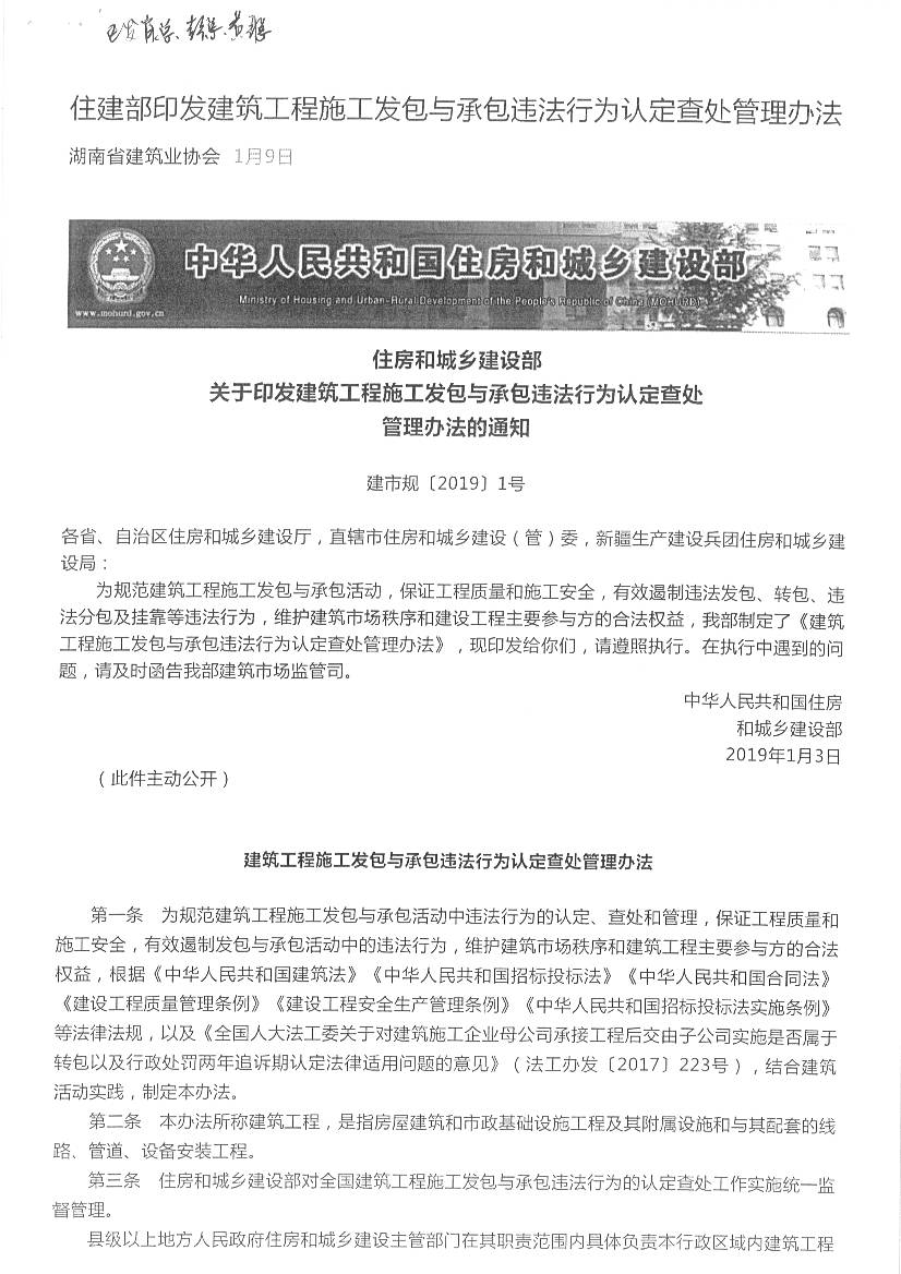 建筑工程施工發(fā)包與承包違法行為認(rèn)定查處管理辦法